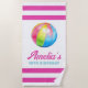 This personalized beach towel with pink stripes and a vibrant colorful pool ball is designed as part of the Waterpark Birthday Collection, making it a perfect decorative and functional element for a summer birthday celebration. Ideal as a pool party decoration, party favor, or special birthday gift, this towel adds a fun and cohesive look to your waterpark-themed birthday setup. Customized with the birthday child’s name, it works beautifully as a stylish prop for poolside photos and a memorable keepsake after the party.