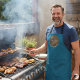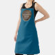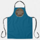 Custom blue apron featuring a rustic brown faux leather patch with 'PITMASTER HENRY LOW & SLOW' text. Perfect for grilling enthusiasts, dads, and home chefs. Personalize the name for a unique gift! Durable and stylish cooking accessory.