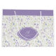 Present your gifts with elegance using this personalized floral gift bag. Featuring a soft botanical pattern in calming lavender and green tones, this bag brings timeless charm and refined beauty to any occasion. The coordinating lavender band and classic medallion highlight a personalized initial and name, adding a thoughtful custom touch that makes every gift feel extra special. Perfect for birthdays, showers, weddings, holidays, or any celebration, this sturdy gift bag combines practicality with graceful design for a beautiful presentation.