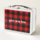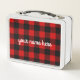 This is a standard metal lunchbox that appears to work just fine. We designed this box ourselves with an uploaded photo and custom text on the front and back. It looks absolutely beautiful except the front of the lunchbox is not centered like it shows in the photo. The print borders don't align with the inset flat part of the box where the preview photo online showed it perfectly centered in there. The back looks nice and centered though.