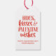 A cute red and white Valentines Day gift tag with the words, hugs kisses & valentine wishes, with a pattern of white hearts on a red background on the back of the gift tag. Personalized it with your name for your Valentine's Day gifts and Treats. Designed for you by Blackberry Boulevard.