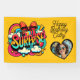 A fun surprise birthday party banner with a retro pop art comic book style in pink, yellow, teal giving it a vintage vibe. You can even add the birthday girl's name and photo in the personalize area.
