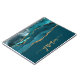 Personalize this elegant modern design with your name in vertical gold-colored signature handwriting script on a teal blue background with a border of teal watercolor agate trimmed with gold faux glitter. (To keep the swashes at the beginning and end of the name, replace only the letters, leaving the symbols in place.)