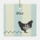 This holiday Christmas tree ornament features a pretty silhouette chicken with a flower design. There is a blue and white striped vintage style background. It can be personalized with a name (front), year (back) or any text that you wish to add. -