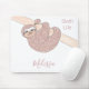 This girly mouse pad is decorated with a cute rose gold glitter sloth hanging from a branch and the words "Sloth Life."