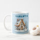 This charming Christmas mug features a beautifully illustrated snowy cottage scene with a cheerful snowman, glowing windows, and softly falling snow – a cozy winter world wrapped around their cup. Add your child’s name to the design to create a unique mug they’ll reach for all December long.