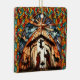 Celebrate the true meaning of Christmas with this exquisite Personalized Stained Glass Nativity Ornament. This beautiful square ceramic ornament features a vivid, intricate design reminiscent of a stained glass window, depicting the Holy Family under the guiding light of the Star of Bethlehem.
