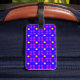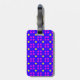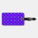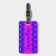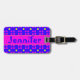 a vibrant luggage tag with a bold polka dot pattern in blue and pink, with prominent yellow dots. In the center, there is a hot pink stripe featuring the name "Jennifer" in a clear, bold font. The luggage tag is attached to a black strap with a classic buckle, suggesting it's ready to be used for travel.