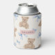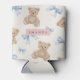 Personalized Teddy Bear & Blue Bow Pattern Can Cooler