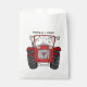 A tractor country farm wedding favor bag which can be personalized. The bunting in the tractor is in a subtle cream and white.
