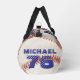 I actually had been searching other sites for a duffle gym bag and I couldn't find any. This one is just what I was looking for with all the features. The inside zip pocket, the outside mesh pocket and LOTS of room inside. Love the printing. Really like how the floral print turned out.