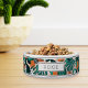 For the most stylish pets, this cute personalized tropical motif bowl for dogs or cats features a pattern of orange citrus fruits, white orange blossoms, and green monstera leaves on a blush pink background accented with top and bottom stripes. Personalize with your pet's name.