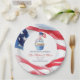 This personalized paper plate is part of the Honoring Service: U.S. Military Retirement Collection. Designed with an American flag border and a patriotic cupcake illustration featuring a small flag in the center, it creates a festive yet respectful look for a military retirement celebration. Customized with the retiree’s name, this plate is perfect for retirement parties, farewell events, and patriotic gatherings honoring years of dedicated service.