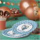 A magical unicorn with a flowing mane enveloped in a heart scattered with colorful stars. This paper plate is perfect for all unicorn lovers.