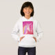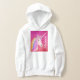 Personalized Unicorn Rainbow Pink Glitter Sparkles Hoodie for girls is designed with a glam style touch. The background is pink and gold faux glitter sparkle with a pretty white unicorn face on the center and it has rainbow hair with flowers on the top of head. Personalized with name in white calligraphy script lettering vertical side.