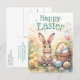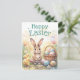 Celebrate Easter with cute, retro charm using this personalized Easter greeting card, featuring a watercolor bunny, chicks, and colorful Easter eggs in a wicker basket. Soft pinks, pastel greens, blues, and botanical details create an elegant vintage aesthetic. This fun Easter postcard is an ideal choice for those who love retro vintage illustration style and seasonal stationery. Fully customizable, this card allows you to add your family name, individual names, or a personalized Easter message, making it a thoughtful option for family greetings, spring well-wishes, or friendly holiday correspondence. Perfect for anyone who appreciates non-photo Easter cards, this design offers a charming way to celebrate the season.