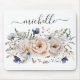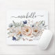 Personalized Watercolor Pretty Beige Blue Floral Mouse Pad