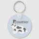 This personalized keychain makes a great small gift for pet rabbit owners. It features a simple style illustration of a white rabbit with charcoal gray spots with your choice of name in matching dark gray lettering all set against a light blue background. Also makes a fun gift for adding to Easter baskets.