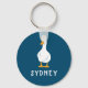 Create a cute small gift for fans of ducks with this personalized keychain. The round, navy blue keychain features an illustration of a white duck with orange bill and feet in a simple realistic style and your own name or short message below in fun white lettering.
