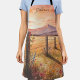 Cook, paint, or garden in style with this romantic apron of a sunset landscape, showcasing pink, yellow, and blue wildflowers by a vine-covered fence, with purple mountains. Add your name or message for a fun, custom kitchen touch, ideal for nature enthusiasts.