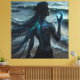 the personification of the ocean, embodied in a striking figure with glowing bioluminescent patterns flowing across their skin. Standing at the edge of the shore, the figure radiates a celestial energy, as if they hold the very essence of the sea in their grasp.