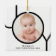 This Baby's First Christmas Photo Ornament is decorated with the word JOY in black on a white background.