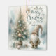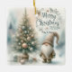 Personlized Whimsical Christmas Gnome and Tree Ceramic Ornament