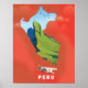 Peru map Illustrated travel poster of the landscape and a small light aircraft plane.