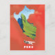 Peru map Illustrated travel poster of the landscape and a small light aircraft plane.
