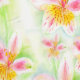Peruvian Lily watercolor Alstroemeria modern watercolor wash art floral pattern in fresh pastel pinks, green, golden yellow and off white hues. Original pattern designed and hand painting in watercolor by Sarah Trett for www.mylittleeden.com