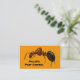 The ant featured on this business card is advertising a pest control service. His red head and thorax contrast with the black abdomen. Both are set off by the gold background. The specific text is on the reverse along with a smaller ant. All text can be customised to suit your particular situation.
