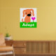 Cute poster for pet adoption. Orange dog with pink heart flower and the work Adopt below.
