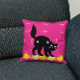 Pet Black Cat On Pink White Yellow Cute Modern Cushion