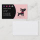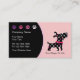 Pet care business cards with stylish dog symbol along with text layout you can customize. Designed for a pet groomer, pet sitter, or pet supplies boutique.