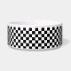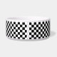 This pet bowl is shown in a cute black and white chequered print.
