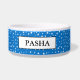 This pet bowl is shown in a cute blue color stars print.