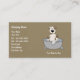 Pet care business card with cute dog in a grooming tub and text layout you can customie now! Perfect for anyone involved as a pet groomer, pet salon, veterinarian, pet hospital, animal shelter, pet kennel, pet grooming, pet sitter, and more!
