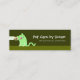 Promote your pet care business with this cute green cat having his head rubbed. Double-sided card has contact information on the back. Suitable for any pet care business.