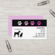 Pet care business cards with stylish paw prints, and dog and a cat in this colourful design, along with great text layout you can customise now! Perfect for anyone that does pet grooming, has a pet salon, or a professional pet groomer, pet sitter, veterinarian.