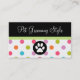 Pet care business cards with colourful design, a pet paw print, and great text layout you can customise now! Also includes customer loyalty check boxes you can use to promote repeat business. Perfect for any business card theme related to pet grooming, pet service, pet sitter, or pet boutique.
