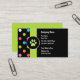 Pet care business cards with paw print and great text layout you can customise now! Perfect for any business card theme related to dogs, cats, pets, pet health, or veterinarian.