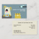 Cute business card for any pet care giver. Dog walkers, cat sitters, bird and fish care, suitable for all. Cute vector drawing of dog, fishbowl, cat and bird on perch.