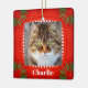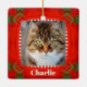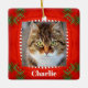 Pet Cat Photo Cute Red Green Christmas Ceramic Ornament