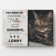 Remember your beloved cat who will always be in your heart with this beautiful marble cat quote pet photo memorial plaque. This elegant design features a light grey marble colour as the background with a quote that says "You Were My Favourite Hello and My Hardest Goodbye." Personalise this cat memorial plaque with your cherished kitty's name and the dates of remembrance.