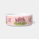 PET CHIC BOWL_GIRLY 241 PINK/GREEN FLORAL ON 255.107.127 PINK WITH BLACK MONOGRAM. COORDINATES WITH DOG BEDS, DOG MATS, DOG CLOTHES, DOG COLLAR. SMALL
