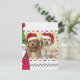 season greeting christmas pet photo cards. This Christmas photo card design is customizable with your own family name and photo! Or of course your dog. There's a christmas background, and the photo is separated from the design by a border. A fun doodle of christmas ornaments with reds and grays followed by "peace and Love" with a handwritten font feel. The rest of the text is customizable! Personalize with your own Christmas greeting or wishes, and your own family names. You can even add the date.