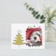 season greeting christmas pet photo cards. This Christmas photo card design is customisable with your own family name and photo! Or of course your dog. There's a christmas background, and the photo is separated from the design by a border. A fun doodle of christmas ornaments with reds and greys followed by "peace and Love" with a handwritten font feel. The rest of the text is customisable! Personalise with your own Christmas greeting or wishes, and your own family names. You can even add the date.