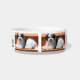This is a heavy, durable bowl decorated with Tibbies of many colors, the perfect size for hungry/thirsty Tibs. The design is interesting and printing clear.
