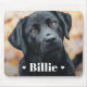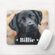 Mousepad featuring your custom pet photo with with the pet's name as a white text overlay flanked by two hearts.