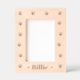 Etched wooden photo frame featuring your pet's name flanked by two hearts, and a pattern of paw prints.
